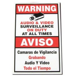 Do you need to place a sign within a yard, on a fence, pole, tree, maybe in a window or more? Then these security signs should do the trick. These plastic, weather resistant security yard signs are available in two sizes, 9x6 inches and 12x18 inches. And best yet, whether you want to ward off the English or Spanish speaking community -- it doesn't matter, as you're able to even address the illiterate via our picture of a surveillance camera.